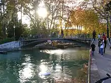 Cette passerelle piétonne marque une des deux entrées, avec le Thiou, des eaux du lac à l’intérieur de la ville.