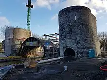 ![]() Le Pont des trous en 2005, avec la seconde version des arches construites après la Seconde Guerre Mondiale, détruites en 2019 pour construire la troisième version. |