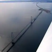 Le pont Ouest du Grand Belt, en danois Vestbroen ou Lavbroen (pont bas) relie par voie routière et ferroviaire Sprogø et Knudshoved.