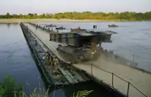 |   Un module de pont flottant déplié de l'Armée suisse. | |