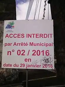 Panneau interdisant l'accès au pont suspendu de la Rivière de l'Est entre 2016 et 2023.