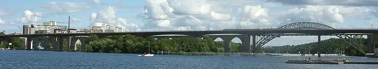 Le projet comprend un pont à voûtes courtes, semblable à un aqueduc, et un arc métallique au-dessus du passage maritime. Après de longues discussions, et plusieurs amendements de la proposition, un accord est signé en 1923 avec les maîtres d'ouvrage, à savoir la société des chemins de fer suédois et la ville de Stockholm. Les travaux peuvent alors commencer.