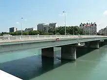 En 1960-1972, le quai Perrache est transformé en autoroute (A7). Le pont est reconstruit en acier coffré de béton précontraint en 1966. En 1972, un nouveau pont est accolé à l'ancien, formant un ensemble de 38 m de large pour 182,31 m de long[16].