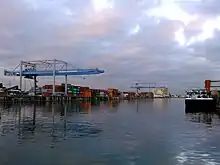L'une des activités en plein développement est le trafic conteneurs. Le premier terminal conteneurs, aujourd'hui appelé « terminal sud », a été construit en 1969 et équipé d'un second portique en 1998. Face à l'augmentation de l'activité un nouveau terminal, le « terminal nord », a été construit en 2004[22]. Environ 30 millions d'euros ont été investis dans la construction et l'aménagement du terminal nord depuis 2003[23]. Le , un deuxième portique à conteneurs est inauguré sur le terminal nord, en présence des autorités régionales. Avec les deux autres portiques de la zone sud, le port de Strasbourg compte ainsi quatre portiques multimodaux[24]. Un cinquième portique, ferroviaire, est mis en service début 2014 au terminal nord, il est officiellement inauguré le [25]. La capacité de stockage du port est de 10 000 EVP. Des grues automobiles de type « Stacker » sont utilisées pour les manutentions hors portiques.