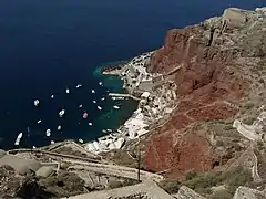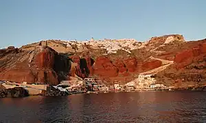 Le village d'Ammoúdi se compose d'un petit port de pêche traditionnel de la caldeira de Santorin, sur la mer Égée, à la pointe nord-ouest de la côte de Santorin, dans un cadre naturel pittoresque, en contrebas du village d'Oia, niché au sommet d'une falaise volcanique rougeâtre d'environ 150 m[2].