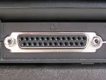 Du côté de l'ordinateur, le port parallèle est constitué par un connecteur DB25 à 25 broches. On y branche le câble de l'imprimante.