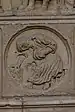 Dans la bande décorative supérieure, se trouvent au centre l'archange Michel et Satan qui, avec une balance, pèsent les âmes[20], sur le côté, deux groupes d’individus : à gauche les bienheureux et à droite les damnés, les premiers la tête ceinte d’une couronne (Ap 2,10), les seconds liés à des chaînes et conduits par deux diables vers l'Enfer[1]. Certains fragments du décor primitif en relief (en particulier des anges jouant de la trompette) sont actuellement exposés au musée de Cluny[21].