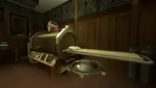 L'enchaînement des événements fait rapidement comprendre à Mel que la situation est anormale quand Cave Johnson lui demande d'échapper de l'endroit où elle est grâce à un nouveau prototype nommé Générateur Portatif de Tunnels Quantiques, autrement dit un prototype du générateur de portails[Note 8].