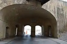 La porte avait à l'origine un pont-levis et un fossé. Le fossé a été comblé au fil des ans, mais il a été découvert et restauré en 2010[3].