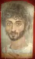 Dans le mythe de Boutadès rapporté par Pline l'Ancien, le portrait est à l'origine de l'art plastique[7]. C'est dans les écrits de Pline que le portrait hérite de sa fonction première de « rendre les absents présents », ainsi que le formulera Alberti[8]. Il subsiste assez peu de portraits peints de l'Antiquité, à l'exception notable des portraits du Fayoum datant du IIe siècle égyptien.