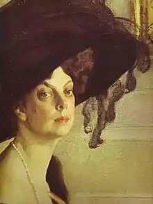 Serov cherche à créer une image moderne par son esprit, tout en restant dans le cadre du portrait d'apparat traditionnel. La toile a été réalisée avec de longues interruptions durant les années 1910-1911, pratiquement en même temps que le portrait tout à fait différent de son portrait d'Ida Rubinstein, ce qui montre la multiplicité des recherches et solutions créatives du peintre[2]. La technique picturale de Serov est raffinée, l'esprit en est marqué par une certaine ironie et peut-être même par du sarcasme. Olga Orlova est représentée dans une pose inhabituelle, le corps brisé en un buste et les jambes. Ce portrait rappelle ceux de Giovanni Boldini : un chapeau énorme et disproportionné, les épaules dénudées, une soyeuse cape en zibeline sur le dos, les mains serrant machinalement le collier de perle, la chaussure vernie qui pointe vers l'avant, tout cela donne à l'image une élégance alambiquée[4].
