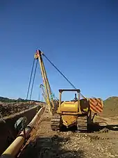 L'engin est un bulldozer avec ou sans lame, mais avec un bras latéral destiné à soutenir les éléments de canalisation.