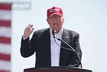 Au mois d', Trump choisit d'embaucher comme « directeur général de campagne » l'ultraconservateur Stephen Bannon, alors directeur de BreitBart News, un site d'information « politico-trash »[128] très populaire au sein de la mouvance de l'Alt-right. Cette « droite alternative » désigne différentes franges du mouvement conservateur américain partageant certaines idéologies, principalement racialistes ou racistes comme le nationalisme blanc ou le suprémacisme, et qui toutes sont hostiles à l'immigration, au multiculturalisme et au « politiquement correct », autant de thèmes utilisés par Trump pour sa campagne.
