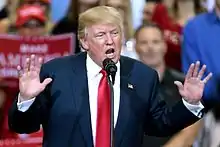 Tout au long de sa campagne, les idées qu’expriment Trump et son programme recueillent les faveurs et le soutien de mouvements américains d'extrême droite, ultranationalistes, racistes et suprémacistes blancs, y compris le Ku Klux Klan[121], qui se reconnaissent dans le discours de Trump et considèrent qu'il exprime leurs idées[122]. Au fil de la campagne électorale, le soutien de ces groupes extrémistes se renforce et s'affirme par des déclarations de ralliement. Ainsi, le président du Parti nazi américain, Rocky Suhayda, déclare : « Nous avons ici une occasion magnifique, qui pourrait ne jamais se représenter, exactement au bon moment. Les déclarations faites par Donald Trump au cours de sa campagne, à défaut d'autre chose, ont démontré que « nos vues » ne sont pas aussi « impopulaires » que la foule du politiquement correct l'a dit à qui veut l'entendre[123] ».
