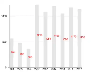 En 1997, les habitants étaient au nombre de 1 218 et en 2002 de 1 084 habitants (dont 91% de Russes)[10],[11].