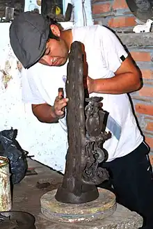 Metepec est l'un des nombreux centres céramiques du Mexique, avec Oaxaca, Puebla, diverses parties du Michoacán et la région de Guadalajara, bien qu'il en produise une quantité nettement moindre[14]. Alors que d'autres produits artisanaux sont fabriqués dans la municipalité, la poterie est la plus importante[4]. La création de la poterie à Metepec est traditionnelle, familiale et d'un design et d'une fabrication locale distinctive. Elle conserve bon nombre de ses techniques traditionnelles de l'époque coloniale, transmises dans les familles de potiers, généralement masculines, mais aussi féminines, qui fabriquent la poterie. Dans de nombreux endroits comme le quartier de Cuaxustenco, les maisons familiales servent aussi d'ateliers capables de gérer toutes les phases de la création, y compris la cuisson. La poterie se distingue aussi bien par les argiles qu'elle utilise que par ses formes et ses styles décoratifs, uniques à la région, mais pas absolument puristes[15]. L'argile utilisée dans la poterie de Metepec est extraite des régions voisines comme Octotitlán (es), San Felipe Tlamimilolpan et Tlacotepec (es). À l'origine, c'est avec une charrette et un âne, mais aujourd'hui, c'est avec des véhicules motorisés qu'on le fait[2]. Il y a trois argiles principales, la rouge, la jaune sableux et la noire[2],[6]. La méthode de mise en forme la plus traditionnelle est l'enroulement sur une base en forme de tortilla[2].