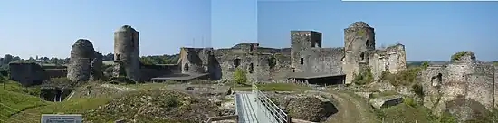 Le XIIIe siècle voit le déclin de la famille seigneuriale de Pouancé[42]. Le fils de Guillaume III, Geoffroy II, meurt vers 1244. Son fils, Geoffroy III, meurt en 1263, laissant sa fille Jeanne seule héritière. Jeanne épouse alors Jean Ier de Beaumont-Brienne. Leur petit-fils, Jean II de Beaumont, après une union avec Isabeau d'Harcourt, s'unit avec Marguerite de Poitiers. Leur fils Louis II de Beaumont meurt sans postérité en 1364, à la bataille de Cocherel[43]. C'est sa nièce Marie Chamaillard, petite-fille d'Isabeau d'Harcourt et Jean II de Beaumont par sa mère Marie de Beaumont, qui récupère la seigneurie de Pouancé et La Guerche, l'ajoutant aux fiefs détenus par son mari, Pierre II de Valois, comte d'Alençon, proche du roi Charles V.