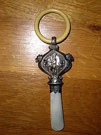 Les jouets de dentition ont une longue histoire. En Angleterre, aux XVIIe et XIXe siècles, un corail signifiait un jouet de dentition en corail, en ivoire ou en os, souvent monté en argent comme la poignée d'un hochet[26]. Un conservateur de musée a suggéré que ces substances étaient utilisées comme « magie sympathique »[27] et que l'os de l'animal pourrait symboliser la force animale pour aider l'enfant à faire face à la douleur.
