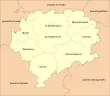 | * le chef-lieu ne fait pas partie de la gmina | ||||