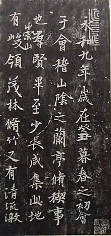 Wang Xizhi est l'archétype du lettré de la période des Dynasties du Sud, avide de nature et de liberté, et pratiquant les arts raffinés. Son style de calligraphie, qui nécessite une grande maîtrise du pinceau, s'impose rapidement, et il sera copié et collectionné de son vivant. Aucun original ne nous est parvenu et son œuvre n'est connue que par des copies.