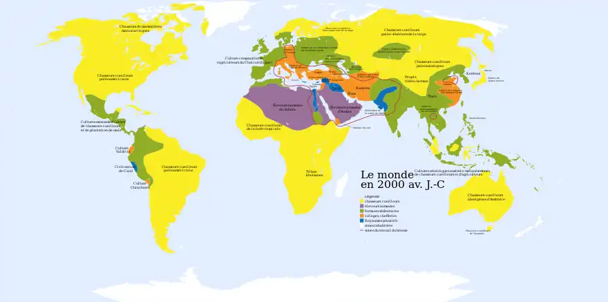 La métallurgie du bronze est parvenue en Grèce et en Crète vers , puis en Europe de l'Ouest et en Chine vers