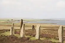 Les cercles de pierre les plus spectaculaires d'Écosse sont situés sur la côte ouest de Lewis (Hébrides extérieures) avec le site de Stones of Stenness, déjà évoqué, mais aussi Ring of Brodgar. De nombreux alignements ont aussi été identifiés dans l'Argyll[4]. Certains blocs pèsent plus de trois tonnes.