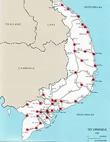 Après la fin de la Seconde Guerre mondiale, les révolutionnaires vietnamiens menés par le communiste Hô Chi Minh entrèrent en lutte contre la France afin d'obtenir l'indépendance de leur pays. En 1954, les accords de Genève consacrèrent la disparition de l'Indochine française et donnèrent naissance au royaume du Laos, au royaume du Cambodge, au Sud-Viêt Nam et au Nord-Viêt Nam, ce dernier étant contrôlé par les communistes du Việt Minh. La guerre du Viêt Nam éclata en 1955 lorsque les troupes nord-vietnamiennes, soutenues par l'URSS, la Chine et les autres gouvernements communistes, voulurent réunifier le Viêt Nam en s'emparant du Sud-Viêt Nam. Sous l'autorité du président Dwight D. Eisenhower, qui souhaitait empêcher l'expansion du communisme en Asie du Sud-Est, les États-Unis remplacèrent la France comme principal protecteur du Sud-Viêt Nam[166]. Des conseillers militaires américains furent dépêchés sur place par Eisenhower puis par Kennedy[167], si bien qu'au moment où Johnson arriva au pouvoir, 16 263 militaires américains étaient présents au Sud-Viêt Nam, la plupart occupant des postes de non-combat[168]. Malgré ses doutes personnels, Johnson augmenta massivement l'implication des États-Unis dans le conflit[169]. Le , au lendemain des funérailles de Kennedy, il signa le NSAM (National Security Action Memoranda) 276 annulant le NSAM 263 que Kennedy avait signé en et qui prévoyait le retrait de 1 000 soldats américains du Viêt Nam avant la fin de l'année[170]. Il craignait en effet que la chute du Sud-Viêt Nam ne porte atteinte à la crédibilité des démocrates sur les questions de sécurité nationale[171],[172] et avait également l'intention de poursuivre ce qu'il considérait comme la politique de Kennedy dans cette région[173]. Enfin, tout comme l'écrasante majorité des hommes politiques américains du milieu des années 1960, il était déterminé à empêcher la propagation du communisme[174].