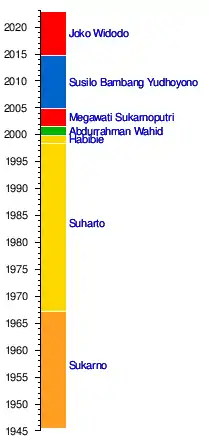 Ce tableau donne la liste des présidents de la république d'Indonésie depuis sa proclamation d'indépendance des Pays-Bas le .