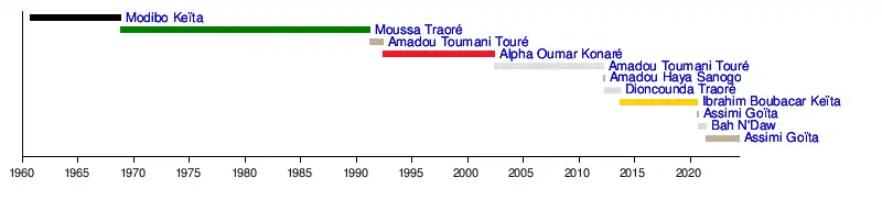 Coup d'État | 22 mars 2012 | 12 avril 2012 | Président du Comité national pour le redressement de la démocratie et la restauration de l’État | Militaire |