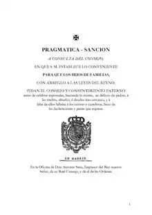 La pragmatique sanction de 1776, dont le titre complet est celui de pragmatique sanction pour éviter l’abus de contracter des alliances inégales (en espagnol : Pragmática Sanción para evitar el abuso de contraer matrimonios desiguales), est un texte juridique espagnol pris le par le roi Charles III.