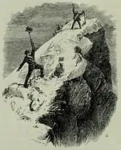 « La pente diminuait, et Croz et moi, nous nous sommes précipités et avons couru au coude-à-coude, pour terminer ex-aequo. À 13 h 40 le monde était à nos pieds, et le Cervin était conquis. Hourra ! Pas une trace de pas ne pouvait être vue. »