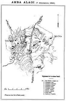 Les forces éthiopiennes se dirigent vers le nord du pays et la région du Tigré. Elles rencontrent une position avancée des troupes italiennes conduites par le Major Toselli et composée de 2 000 askaris érythréens, à Amba Alagi. Le , le ras Makonnen, Welle Betul et Mangesha Yohannes mènent l'assaut.