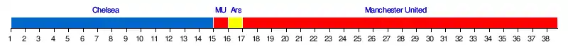 | Chelsea | 2-0 | 3-3 | 3-1 | 2-0 | 4-0 | 1-0 | 1-1 | 1-0 | 0-1 | 2-0 | 2-1 | 2-2 | 2-0 | 0-3 | 2-1 | 6-0 | 3-0 | 1-0 | 2-0 | |