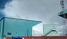 The Cowshed abrite des fans à Prenton Park et a une capacité de 2 500 personnes[4]. Il a disposé des sièges inclinée à causée de la route principale[13]. Historiquement, il abritait les fans les plus vocaux à domicile mais il a été remplacé par des supporters éloignés au début du 21e siècle[13]. Depuis le changement, un bar et des écrans de télévision ont été ajoutés dans les tribunes[13]. Le nom est dérivé de son appartion avant le réaménagement en 1995 avec un toit à 3 pics en tôle ondulée, des murs de planches de bois et un plancher de cendre qui ressemblait visuellement à un bâtiment agricole.