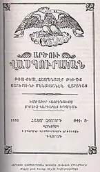 | Ardzvi Vaspourakan | Արծուի Վասպուրական | « L'Aigle du Vaspourakan » | Journal | 1855-1874 | Constantinople (1855-1858) Varagavank (1858-1864) Constantinople (1872-1874) |