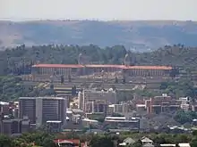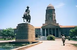 De haut en bas et gauche à droite : vue de Pretoria CBD, Union Buildings, Voortrekker Monument, Bâtiment administrative de l’université de Pretoria, Church Square, Loftus Versfeld Stadium, Palais de justice. | ||||