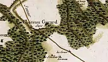 À proximité de son château de Châtel-Gérard, il possédait d'immenses forêts. Au début du XIIIe siècle, il fit don de terres au lieu-dit Les Vaulcées ou Le Vaux[3], pour y fonder un établissement religieux, le premier prieuré issu de la maison-mère du Val des Choues[4]. Ce lieu sauvage et reculé répondait parfaitement aux exigences de la règle du Val des Choues. Le nouveau prieuré fut placé sous le vocable de Saint-Denis et de Notre-Dame.