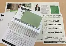 Alain Lipietz[4], Yves Cochet[4], Stéphane Lavignotte[13], Élise Lowy[30]. | |
