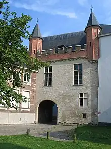 Le palais était relié à la berge par plusieurs ponts. Vers le bourg, au nord, le pont se finissait par une poterne à tourelles, appelée het Rabot, érigée en 1489, et qui servait de grande porte. On la voit sur plusieurs représentations de l'époque. C'est le seul vestige survivant aujourd'hui.
