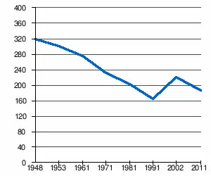 En 2002, l'âge moyen de la population était de 43,4 ans pour les hommes et 45,4 ans pour les femmes[4].