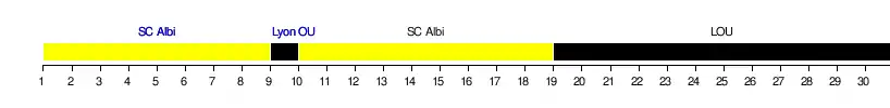 | SC Albi | 1 | 1 | 1 | 1 | 1 | 1 | 1 | 1 | 2 | 1 | 1 | 1 | 1 | 1 | 1 | 1 | 1 | 1 | 2 | 2 | 2 | 2 | 2 | 2 | 2 | 3 | 3 | 3 | 3 | 3 |