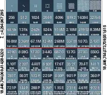 Le problème peut être résolu par une addition où chaque valeur est le double de la précédente. Puisqu'un échiquier possède 64 cases, le total des grains est de 1 + 2 + 4 + 8 + 16 + 32 + 64 + 128... jusqu'à la 64e case. On obtient ainsi 18 446 744 073 709 551 615 grains, ce qui correspond au 64e nombre de Mersenne.