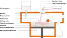 Un processus similaire est la fusion par faisceau d'électrons (electron beam melting en anglais), qui utilise un faisceau d'électrons et non un système laser comme source d'énergie.