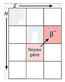 Au cours du ralliement vers la situation stable, une fois les neutrons retardés émis par les précurseurs, le nombre total de nucléons des atomes instables initialement formés ne change pas, sauf cas rarissimes ; seul le nombre de protons augmente par transformations successives de neutron en proton avec émission d’un électron à chaque fois et libération d’énergie sous forme de rayonnement gamma.