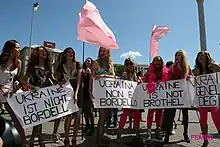 Les thèmes de la prostitution et du trafic sexuel ont occupé une place prépondérante dans les médias ukrainiens ces dernières années. L'UEFA Euro 2012 était fortement lié à la prostitution et au tourisme sexuel dans le pays. Des efforts ont été déployés par le ministère ukrainien de la Santé et d'autres partis politiques en faveur de la légalisation de la prostitution avant le grand événement sportif, affirmant que cela améliorerait les conditions de travail des prostituées, évitant les maladies sexuellement transmissibles et créant un nouveau source de recettes fiscales[27].