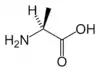 Tous les acides aminés protéinogènes  à l'exception de la proline  partagent une structure commune, constituée d'une fonction acide carboxylique, d'une amine primaire sur le carbone α, et d'une chaîne latérale. Cette dernière présente une très grande variété de structures chimiques, et c'est l'effet combiné de toutes ces chaînes latérales d'une chaîne polypeptidique qui détermine la structure tridimensionnelle ainsi que les propriétés chimiques de cette dernière[5]. La planche ci-dessous présente la structure chimique des 22 acides aminés protéinogènes :