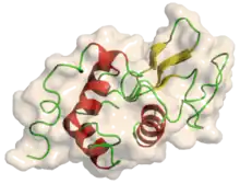 Le rôle le plus visible des protéines dans la cellule est celui d'enzyme, c'est-à-dire de biomolécule catalysant des réactions chimiques. Les enzymes sont généralement très spécifiques et n'accélèrent qu'une ou quelques réactions chimiques. La très grande majorité des réactions chimiques du métabolisme sont réalisées par des enzymes. Outre le métabolisme, ces dernières interviennent également dans l'expression génétique, la réplication de l'ADN, la réparation de l'ADN, la transcription de l'ADN en ARN, et la traduction de l'ARN messager en protéines. Certaines enzymes agissent sur d'autres protéines pour y lier ou en cliver certains groupes fonctionnels et des résidus d'autres biomolécules, selon un processus appelé modification post-traductionnelle. Les enzymes catalysent plus de 5 000 réactions chimiques différentes[34]. Comme tous les catalyseurs, elles ne modifient pas les équilibres chimiques mais accélèrent les réactions, parfois dans des proportions considérables ; ainsi, l'orotidine-5'-phosphate décarboxylase catalyse en quelques millisecondes une réaction qui prendrait sinon plusieurs millions d'années[35],[36].