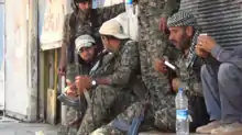 Les chabiha sont des milices pro-gouvernementales non officielles généralement issues de la communauté alaouite. Le gouvernement les a utilisées régulièrement, au début des troubles, pour disperser les manifestations et faire régner l'ordre dans les quartiers en effervescence[110],[111],[112]. Quand les manifestations ont laissé place au conflit armé, l'opposition a commencé à nommer « shabiha » tout civil pro-Assad participant à la répression du soulèvement[113]. L'opposition a accusé les shabiha d'être à l'origine de nombreux abus commis à l'encontre des manifestants et des opposants[113] ainsi que de pillages et de déprédations[114],[115].