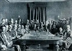 Le protocole de paix Boxer est signé le dans la légation espagnole de Pékin. Le prince Qing et Li Hongzhang signèrent le protocole au nom de la Chine. Alfons Mumm (baron von Schwarzenstein), Ernest Mason Satow et Komura Jutaro signèrent respectivement au nom de l'Allemagne, de la Grande-Bretagne, et du Japon.