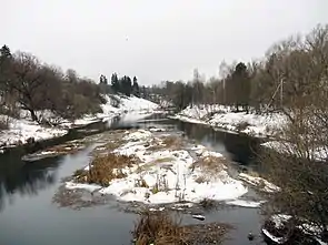 Elle traverse cet oblast du nord-ouest vers le sud-est, et en fin de parcours revient dans l'oblast de Moscou. Peu après, elle se jette dans l'Oka en rive gauche, à 12 km en amont de la ville de Serpoukhov.